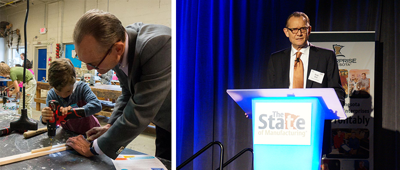 Kill is quick to give credit to others for Enterprise Minnesota’s revival, noting that three of the organization’s leaders — John Connelly, Lynn Shelton, and Pat Vasatka — were already on staff and working on the rebirth when he arrived. Still, he led the charge. Early on, he knew that Enterprise Minnesota shouldn’t limit its role to providing top notch consulting services, though that was a top priority. He also wanted Enterprise Minnesota to increase manufacturing’s visibility and to connect manufacturers with each other and with what he calls the “manufacturing ecosystem,” including community and technical colleges, policymakers, economic development organizations, and professionals such as CPAs and attorneys.