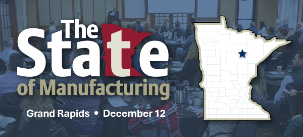 Bob Kill, president and CEO of Enterprise Minnesota, will share results from the 17th annual State of Manufacturing survey, which reveals the opinions of manufacturing executives on Minnesota’s economy, business climate, and their outlook for the future.